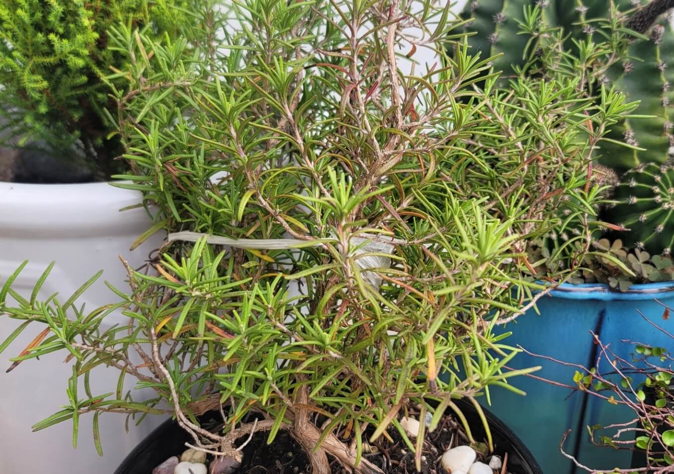 로즈메리는 분갈이를 되도록 안 하는 게 좋다. 분갈이하다가 쉽게 죽어버리는 경우를 여러 번 경험해 봤기 때문이다. 그렇기에 아예 처음부터 넉넉한 화분에 심을 것을 추천한다. 키우다 보면 어느새 무성하게 자라 뿌리가 화분밖으로 삐져나온다든지 다른 화분들보다 물이 훨씬 빨리 말라버린다든지 더 이상 분갈이를 하지 않을 수 없을 지경에 이르면 어쩔 수 없이 해주어야 한다. 이때 가장 중요한 포인트는 통풍이 잘되고 배수가 좋은 흙을 선택하는 것이다. 입자가 굵은 마사토나 난석 등을 흙과 잘 섞어서 심어주어야 한다. 또 분갈이를 할 때 흙을 털어내거나 뿌리를 잘라내는 등의 행동은 절대 하지 않는 것이 좋다. 또한 분갈이 후 너무 꾹꾹 누르지 않는 것이 좋다. 공기가 들어가지 않을 정도로만 살살 눌러가며 흙을 채워 넣고 분갈이를 다 마치고 나면 물을 흠뻑 주어서 뿌리가 잘 내릴 수 있도록 하여야 한다. 이때 한 번에 많이 주는 것보다는 적은 양의 물을 천천히 오랫동안 전체 흙에 잘 퍼져나갈 수 있도록 주는 것이 아주 중요하다. 분갈이는 되도록 봄이나 가을에 하는 것이 좋다. 적정한 기온과 습도로 인해 새로운 뿌리가 더 잘 자라며 생장에도 유리하기 때문이다. 어느 정도 자리를 잡아 잘 자라나면 가지를 쳐주는 것도 중요한 부분 중 하나이다. 머리 부분을 무성하게 키우는 것보다 가지를 쳐내서 통풍이 원활하게 해 주는 것이 매우 중요하다. 특히 습도가 높은 계절인 여름엔 가지치기에 더욱 신경을 써주어야 한다.